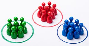 Colorful Pawns Inside The Particular Circles. Market Segmentation Concept